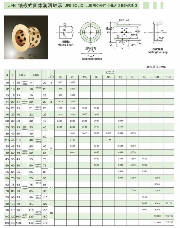 JFB鑲嵌式固體潤滑軸承尺寸表