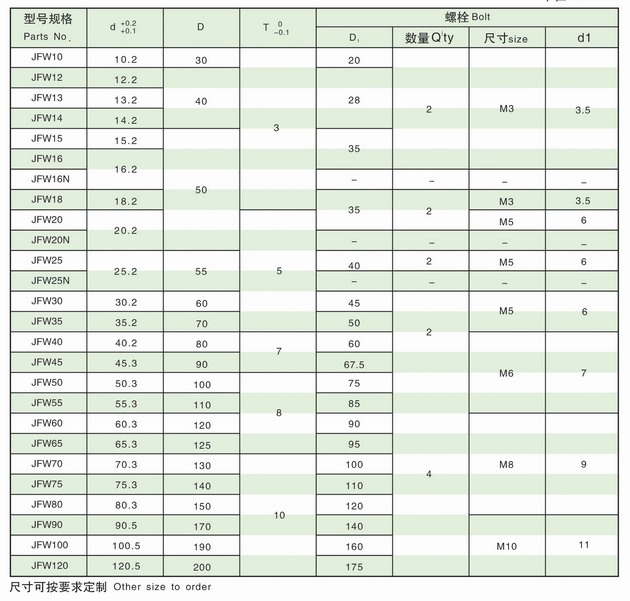 JFW止推墊片尺寸表